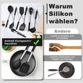 Alle Teile sind rostfrei, langlebig und spülmaschinenfest – für eine einfache und hygienische Reinigung. Dieses Küchenbesteck-Set überzeugt durch modernes Design, hohe Funktionalität und Qualität, die deinen Kochalltag erleichtert.